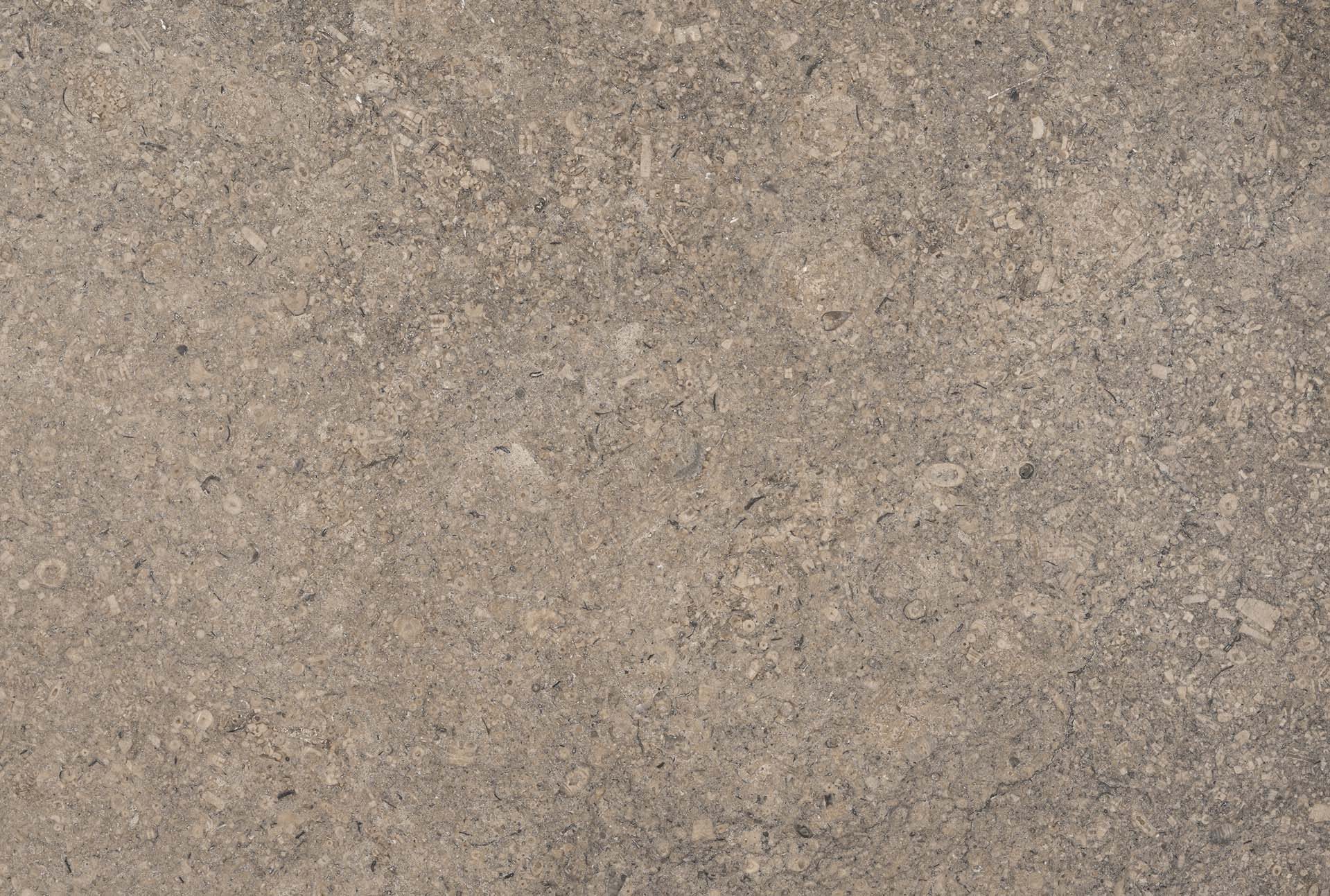 Light to dark grey limestone with light flecks and variable fossil content. Pinky undertone in places.