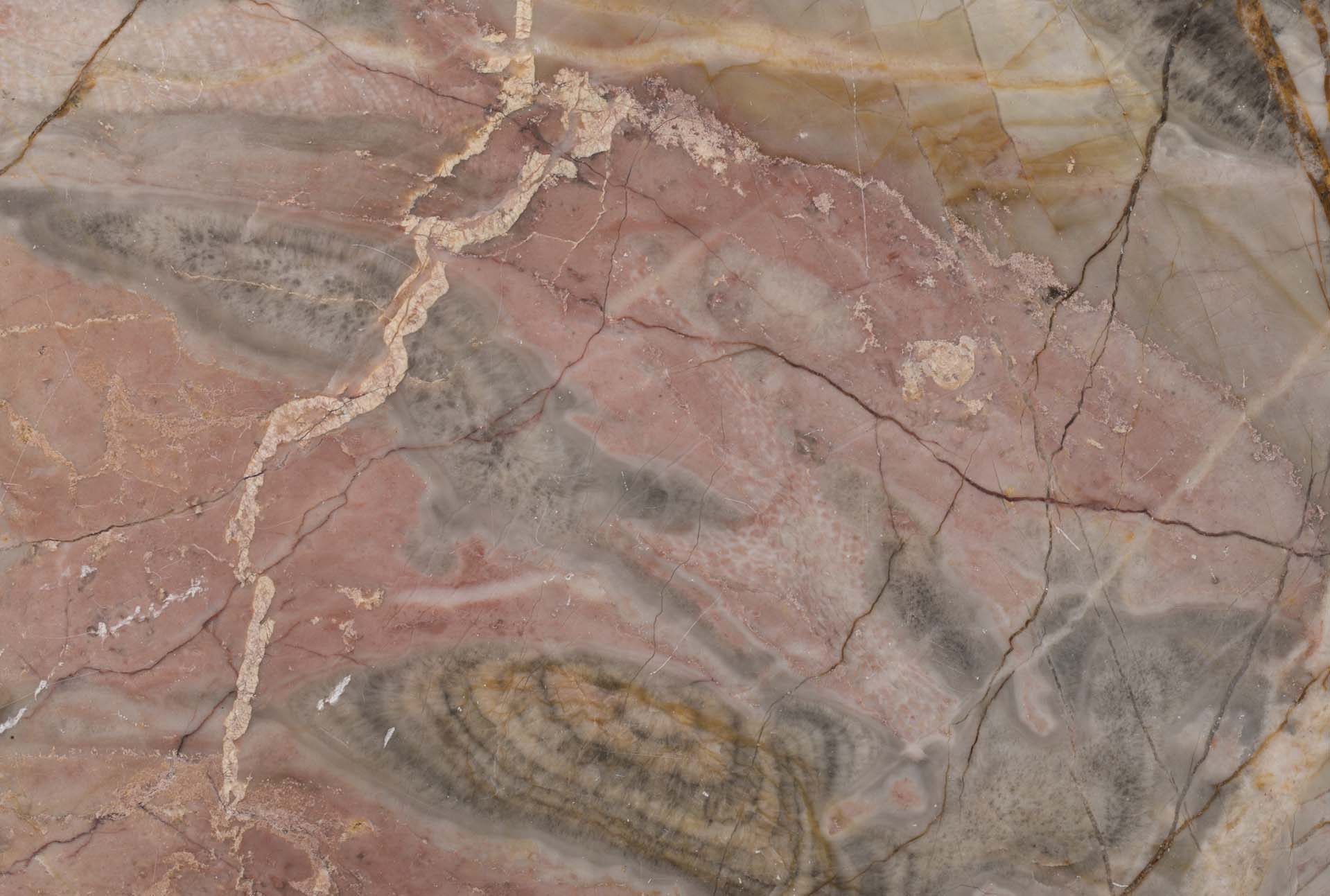 One of the Devon marbles with a strong pinky beige colour and contrasting veining present.